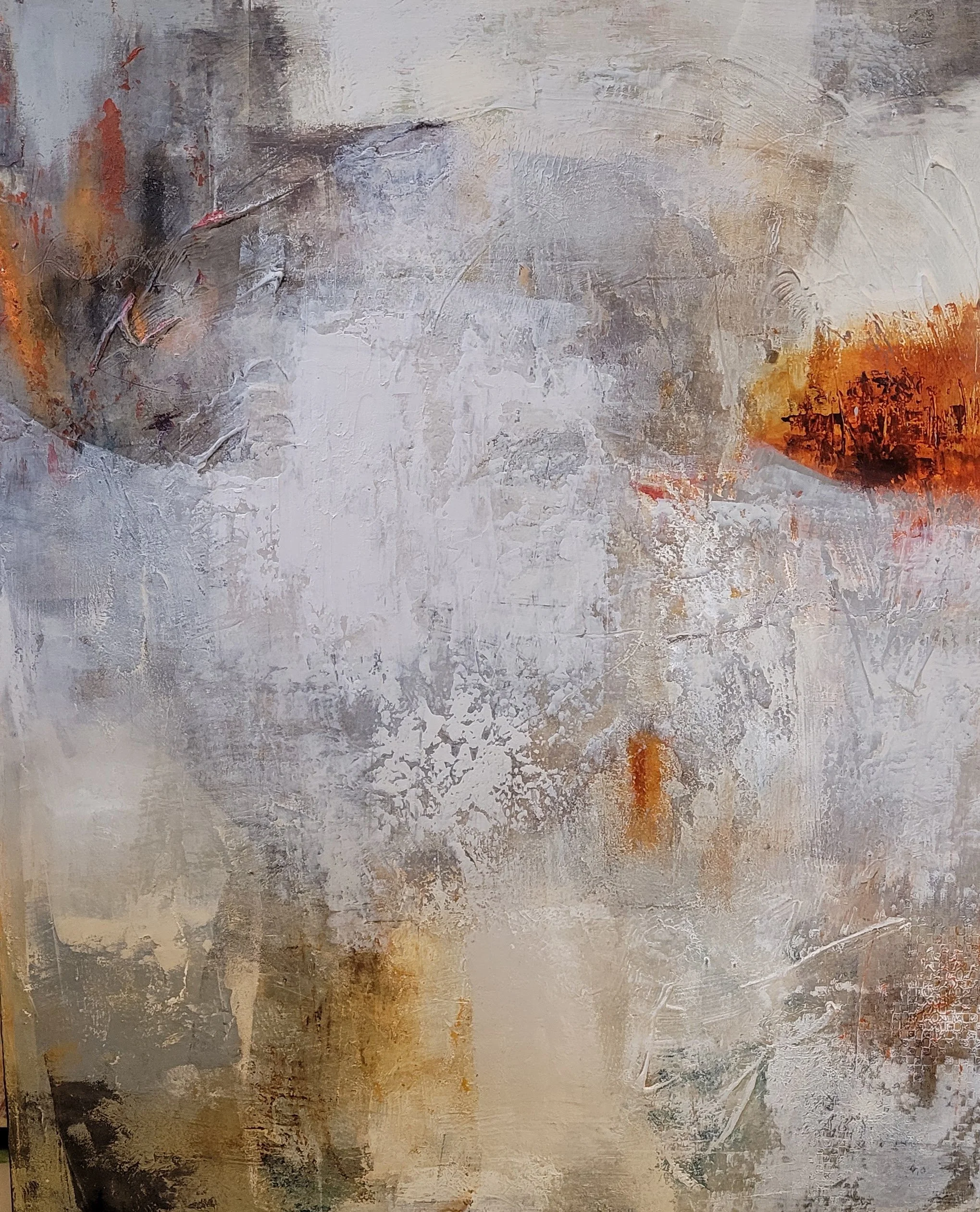This painting is part of my Breathe series, an exploration of contemplative spaces and moments of calm through abstract expression. Each piece in this collection balances dynamic movement with peaceful stillness, creating visual breathing room that invites the viewer to pause and reflect. A subdued palette and rhythmic elements are used to create a meditative quality.